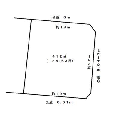 東 6.0m 公道 接面22.0m ・ 南 6.0m 公道 接面19.0m ・ 北 6.0m 公道 接面19.0m ・ 三方道路